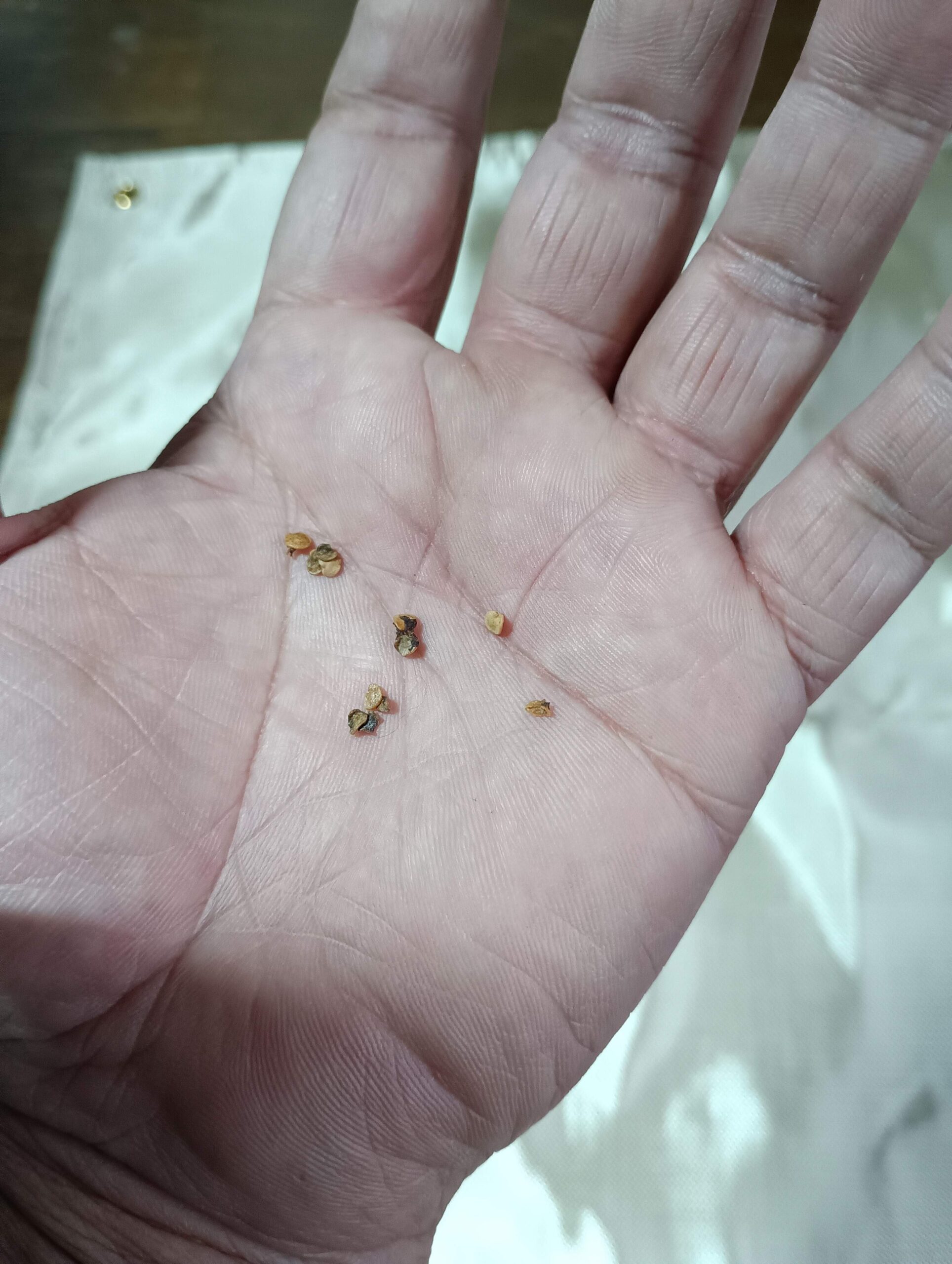 手のひらに乗せると、風が吹けば飛んでいってしまいそうなほど小さくて軽い。 でも、この小さな粒の中には、あの大きな実をつけるための「力」がぎゅっと詰まっているんです。